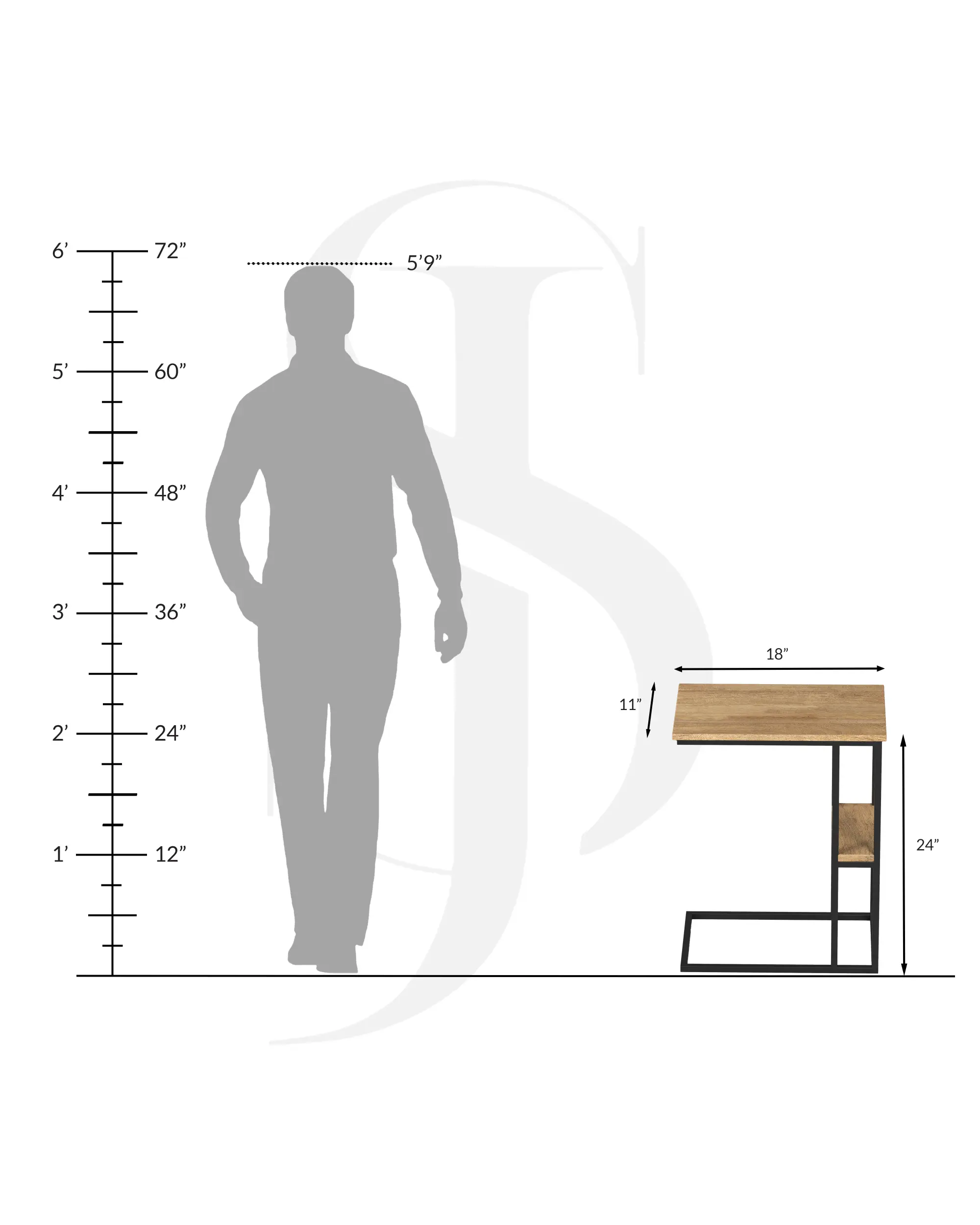 → Dimensions: H 18” / W 11” / L 24” CM