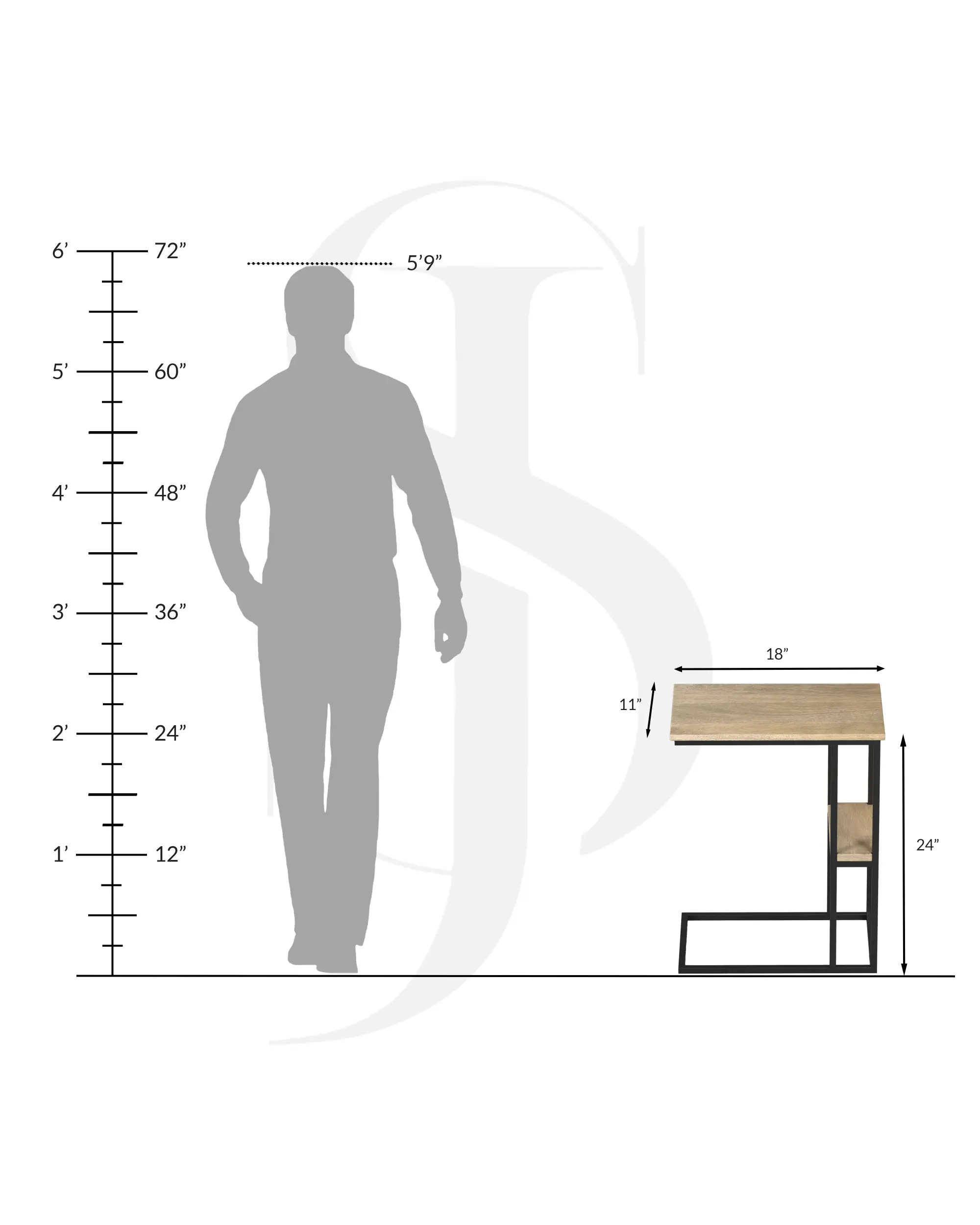 → Dimensions: H 18” / W 11” / L 24” CM